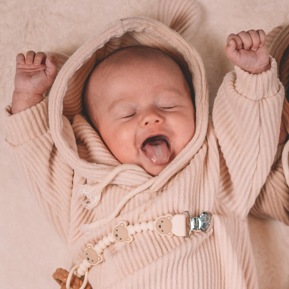 Holds paci close! Say goodbye to lost pacifiers! Our Sweetie Strap Plus™ is made of soft silicone and keeps pacifiers close while adding a sweet character to baby’s favorite pacifier.