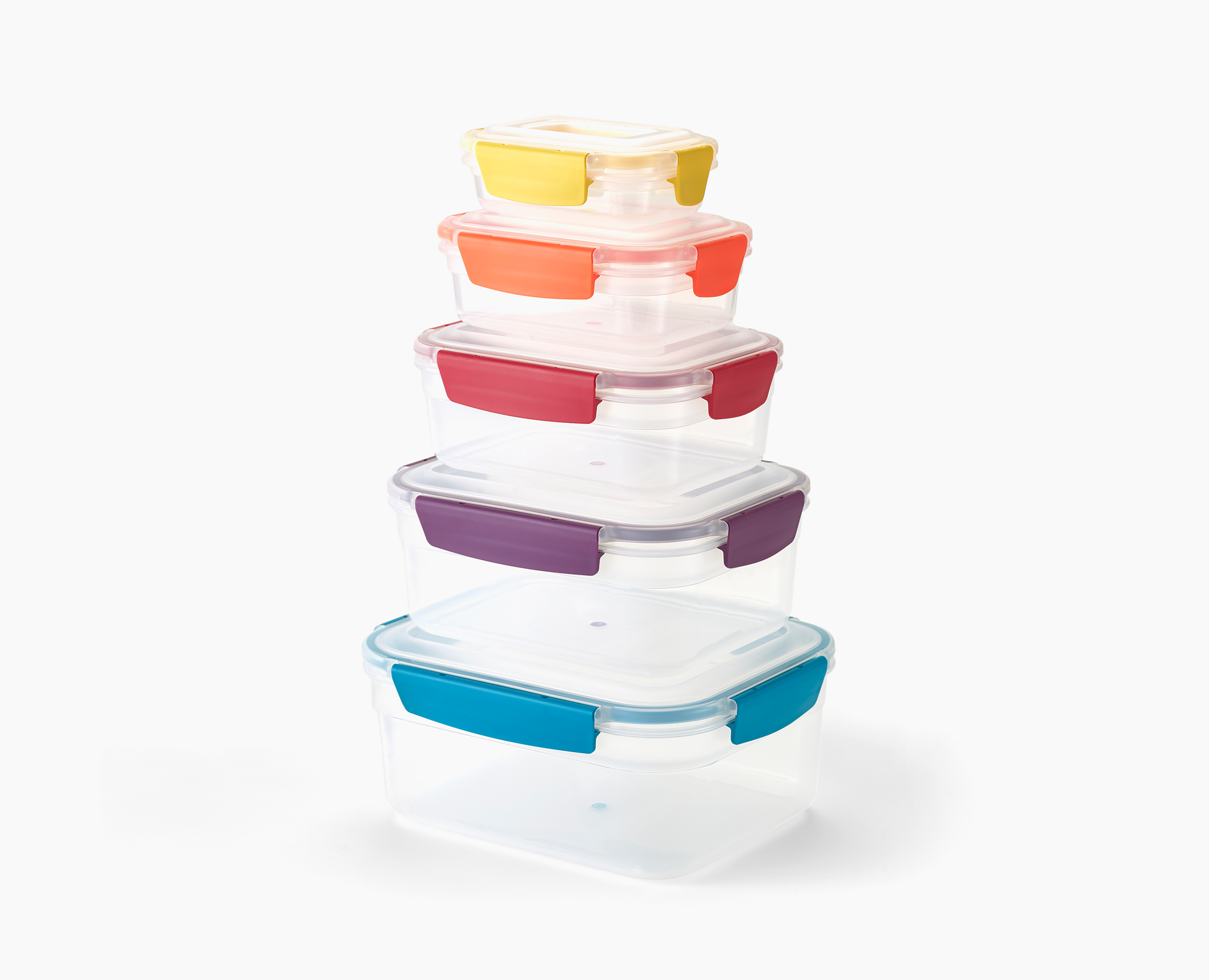 Swap container chaos for seamless storing with Nest™ Lock, our five-piece food storage set. Leakproof, airtight lids keep food and liquids fresh and secure whilst the clever design allows the containers and lids to stack neatly together when stored away.