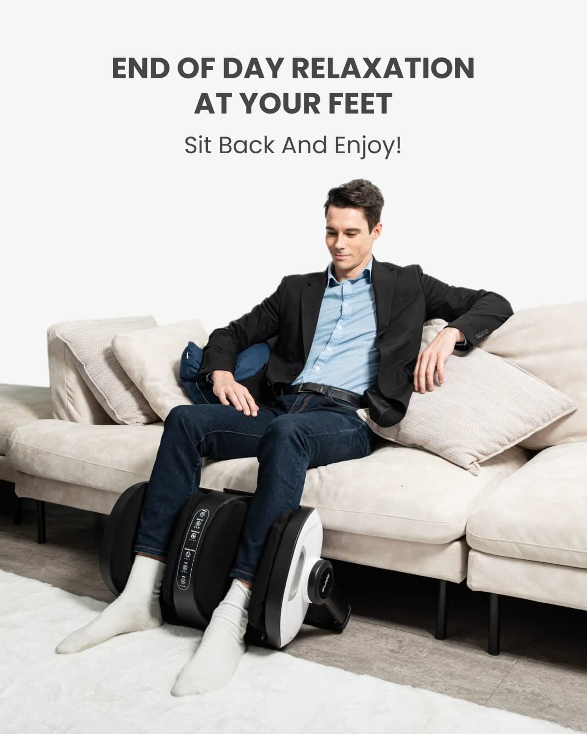 Experience soothing relief at home with the Shiatsu Calf & Foot Massager Pro 2 — the ultimate way to pamper tired feet and calves.