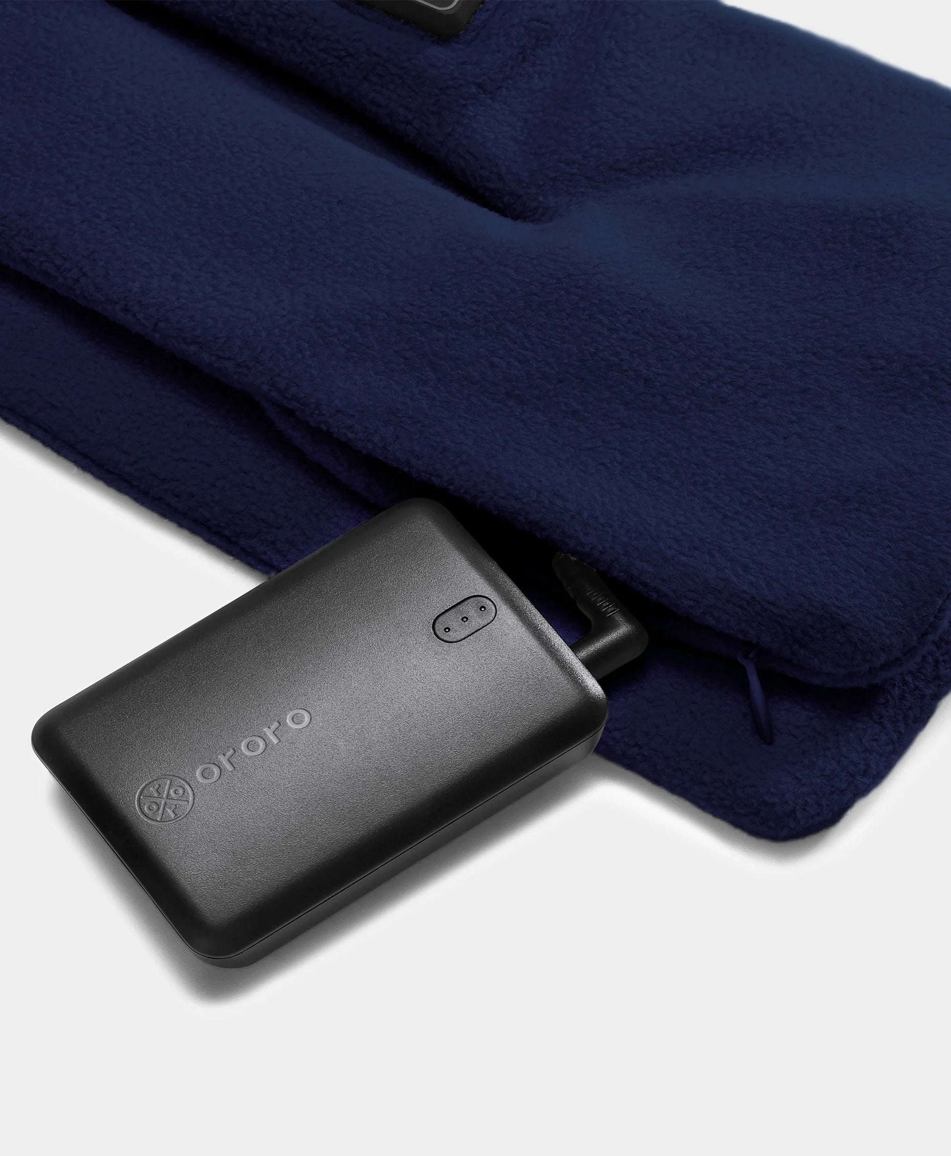 • The battery is lightweight and can easily slip in the hidden pocket with a zipper at the bottom of the scarf. No bulk around your neck.